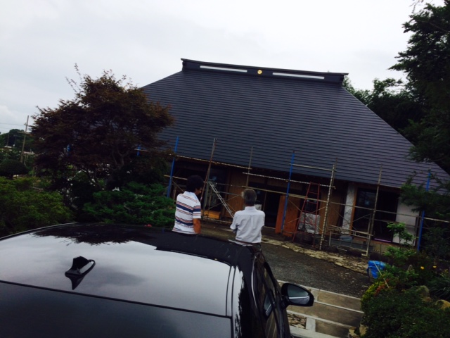 きのうは築170年の「再築」の現場に相棒を連れて。  屋根のぐしには金の家紋、棟の部分の板金のおさめのアールのラインが実に美しい。  匠の技が輝る。