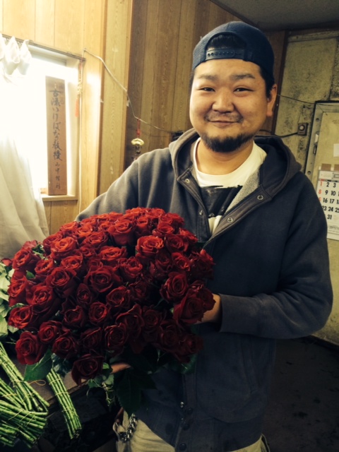 実際には白い薔薇を贈ります。   古河市諸川の「黒子バラ園」の黒子君。