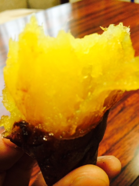 夕方の会議の前にちょうど焼き芋屋さんが。   みんなで半分ずつ割って食べた。   甘くて美味かったなぁ(^O^)