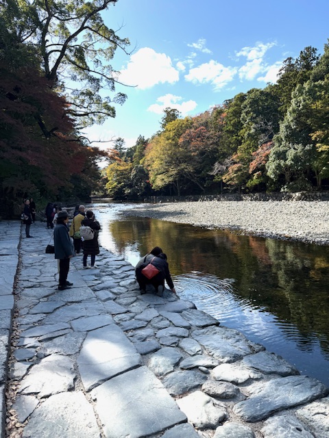 五十鈴川で手水を。
