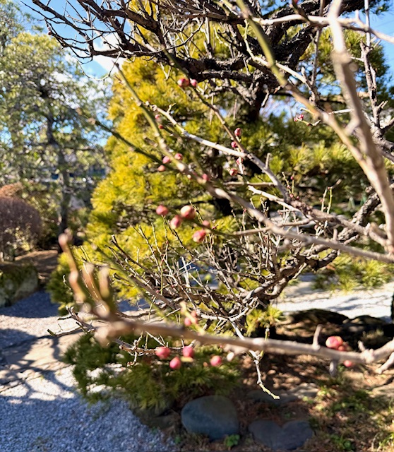 昨年よりも梅の蕾の数がまだ少ないような・・・・・(今年のほうが寒いのかな)