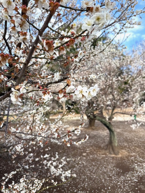 連日の強風で梅の花びらがたくさん落ちています。