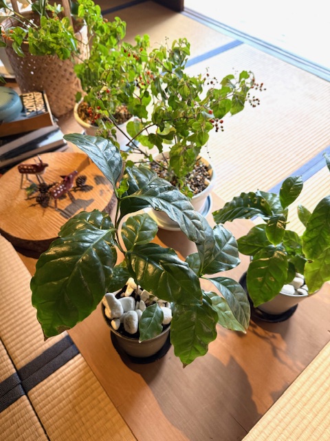 宿泊のお客様がないときには、このように観葉植物を日向ぼっこさせています。