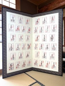 12年前に親父とお袋が御開帳巡りをして、それを表具屋さんが屏風にしてくれたものです。