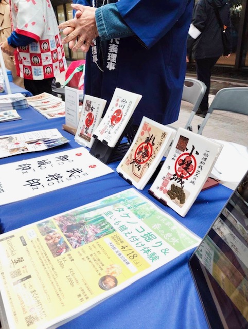 まくらがDMCでは、地元茨城県古河市の観光名所をご紹介するパンフレットやkominka翠を舞台にした様々な体験コンテンツ紹介のチラシ、ポスター展示、オリジナル御城印、武将印の販売を行いました。