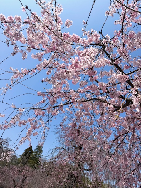 お寺の境内の枝垂れ桜も綺麗に。